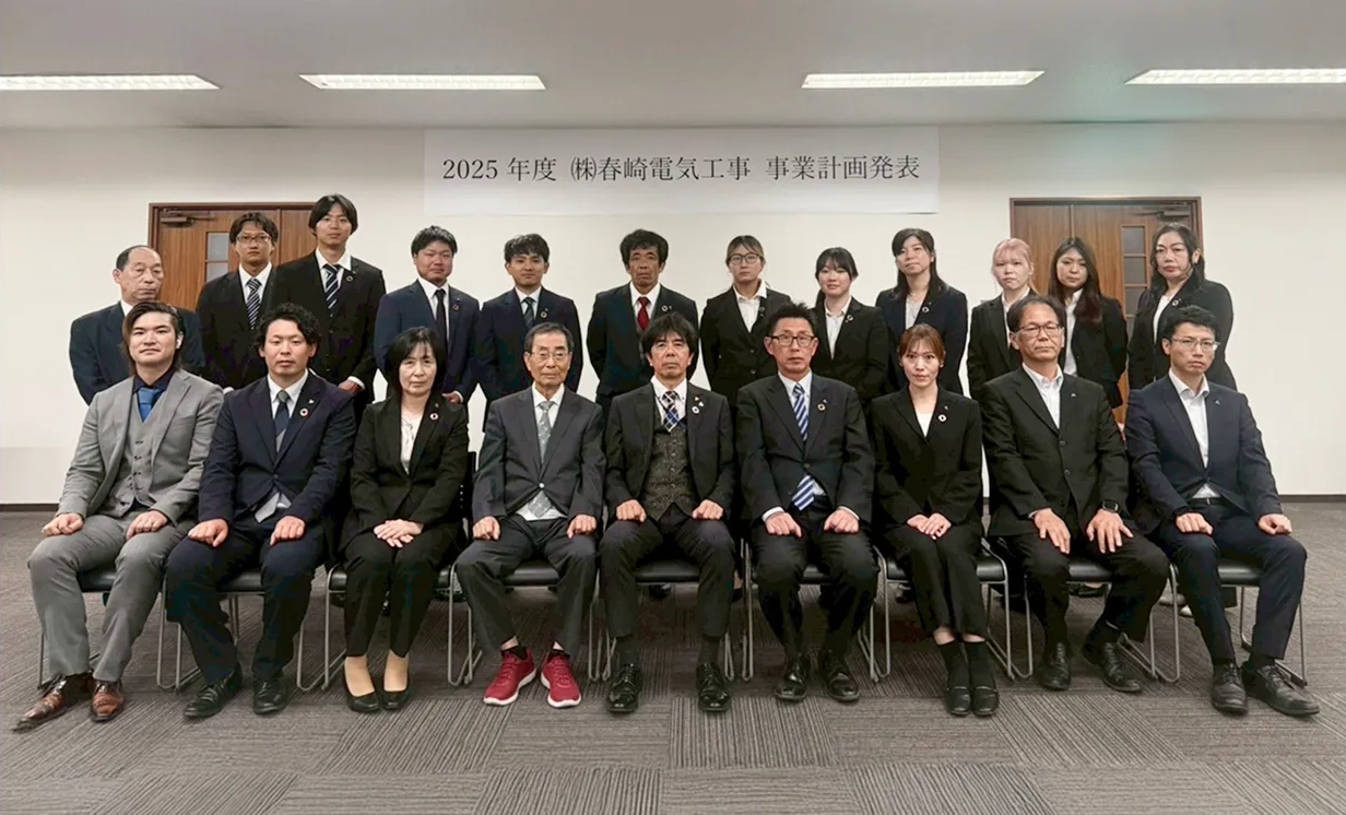 春崎電気工事は、電気という仕事を通して、地域の暮らしに「安心」を届ける会社です。私たちが何より大切にしているのは、「人として成長できる環境を整えること」。社員一人ひとりが、自分らしく輝ける場をつくることを目指しています。
